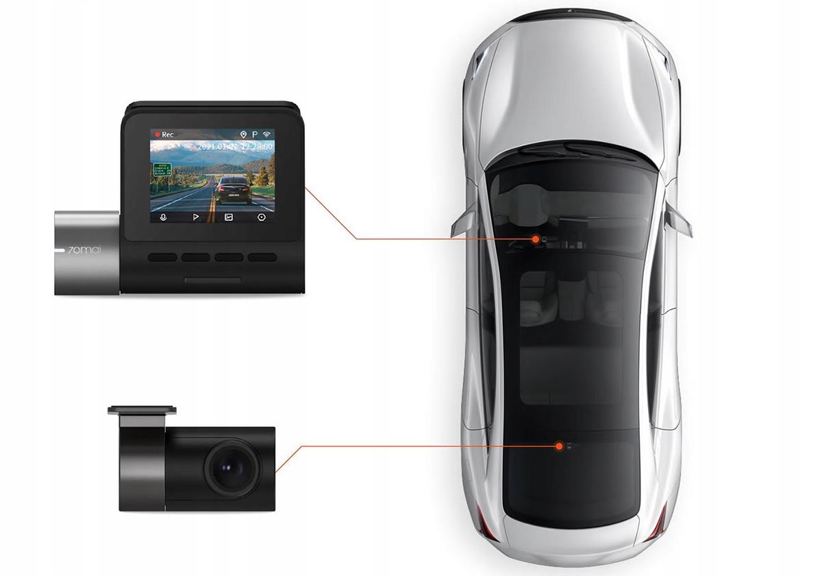Kompatybilna z tylną kamerą RC06, 70mai A500S Dash Cam Pro Plus+ może nagrywać dwukanałowo, zapewniając bezpieczeństwo z przodu jak i z tyłu pojazdu. W trybie dwukanałowym przednia kamera utrzymuje rozdzielczość do 1944P, natomiast tylna kamera nagrywa w 1080P