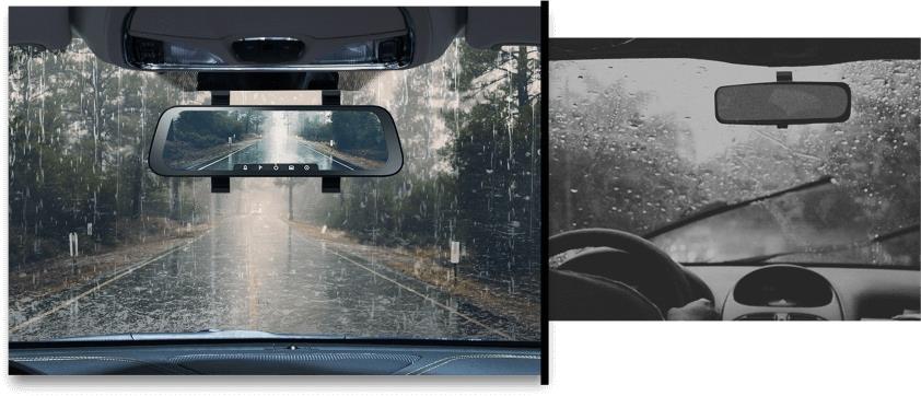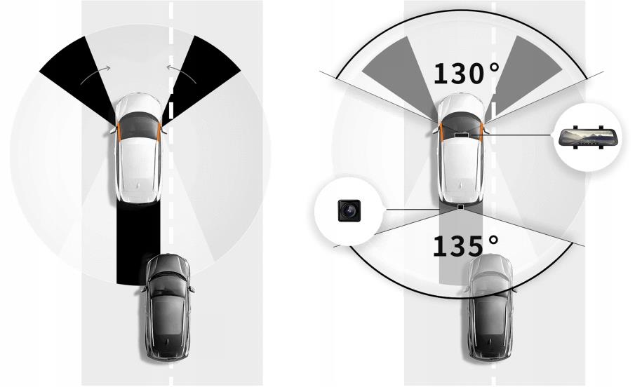 Kamera zamontowana na fabrycznym lusterku wstecznym nie zabiera dodatkowej przestrzeni ani nie zmniejsza pola widzenia kierowcy