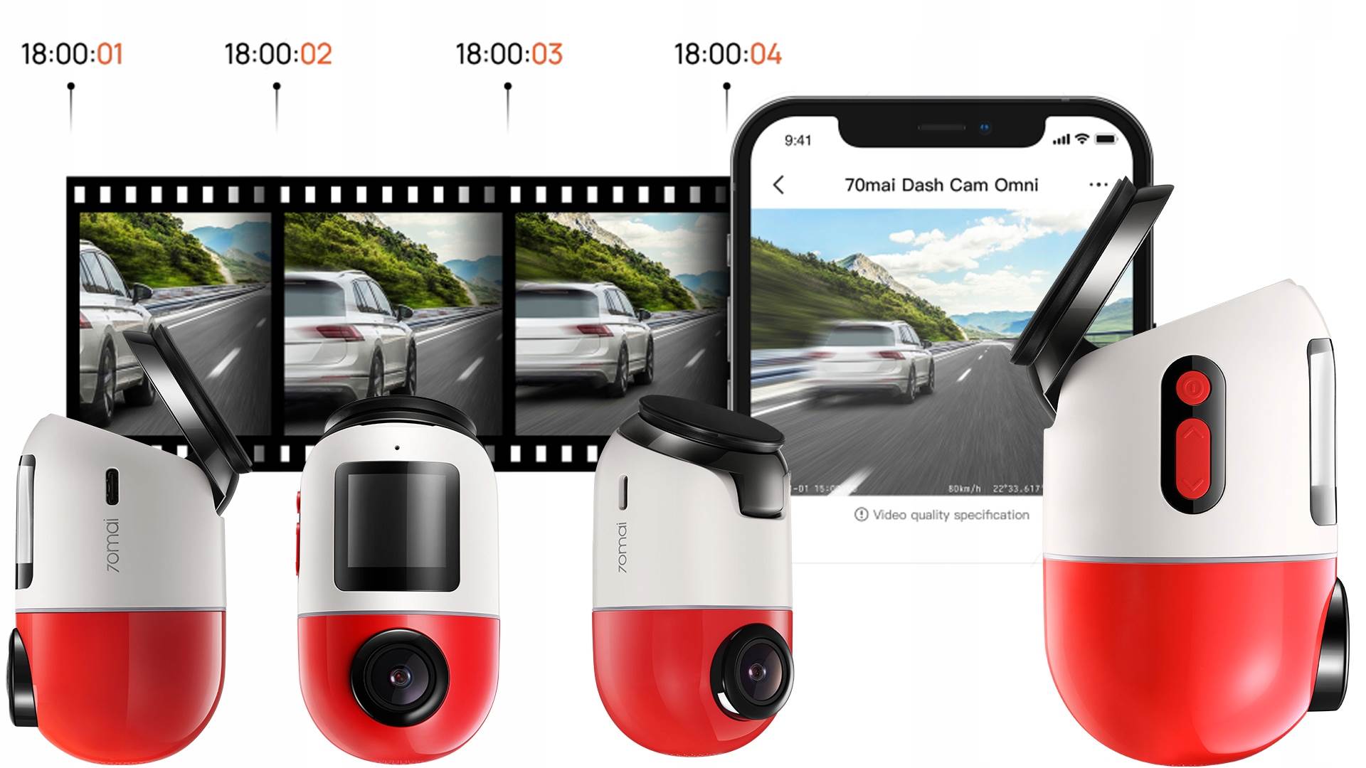 70MAI WIDEOREJESTRATOR OMNI X200 CZERWONY 64 GB