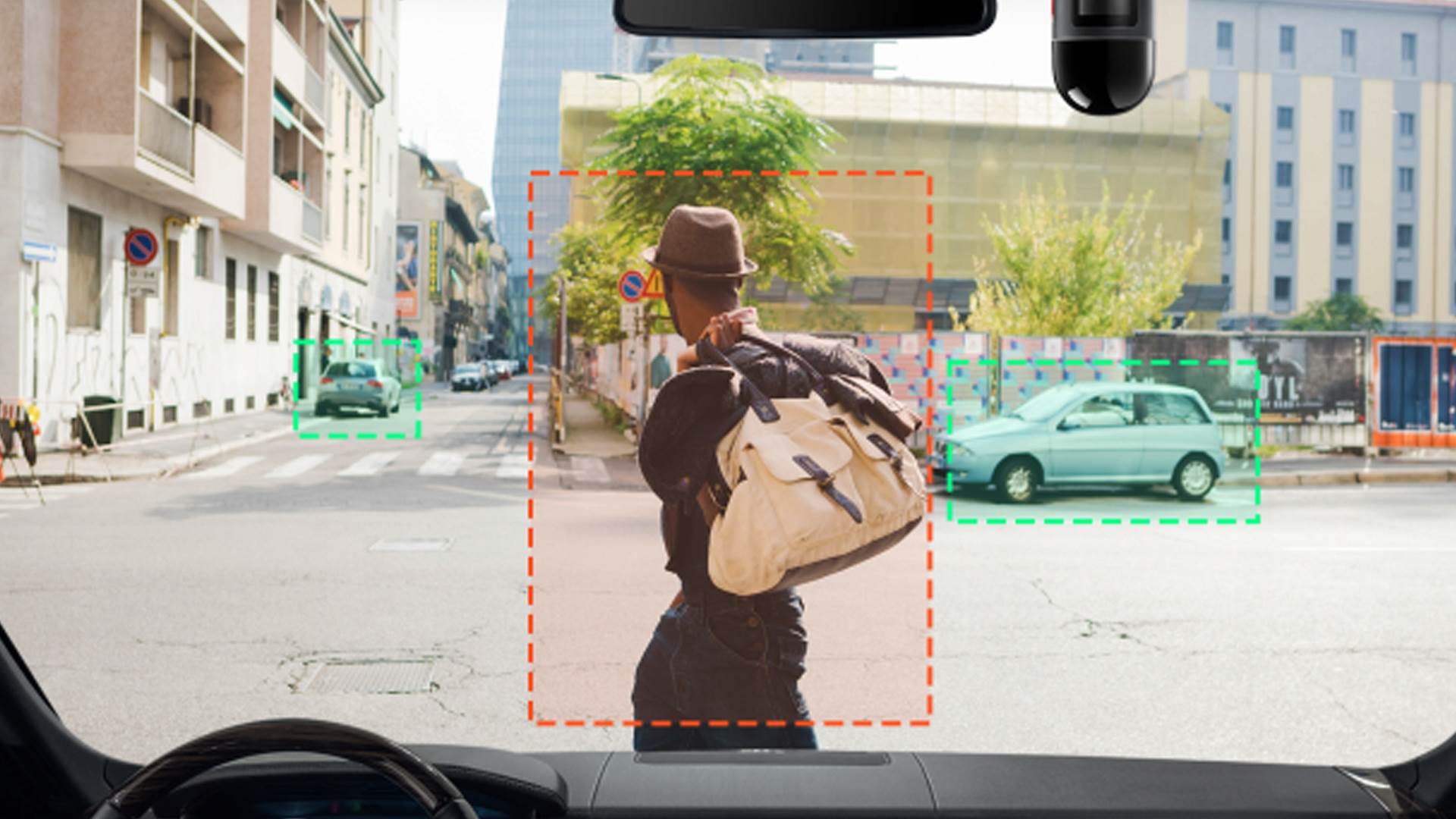 ADAS zaawansowany system wspomagania kierowcy ostrzeże o potencjalnych zagrożeniach na drodze, takich jak krótki dystans do poprzedzającego pojazdu, zjechanie z pasa ruchu, ruch pojazdu z przodu, wykrycie pieszego i rowerzysty.