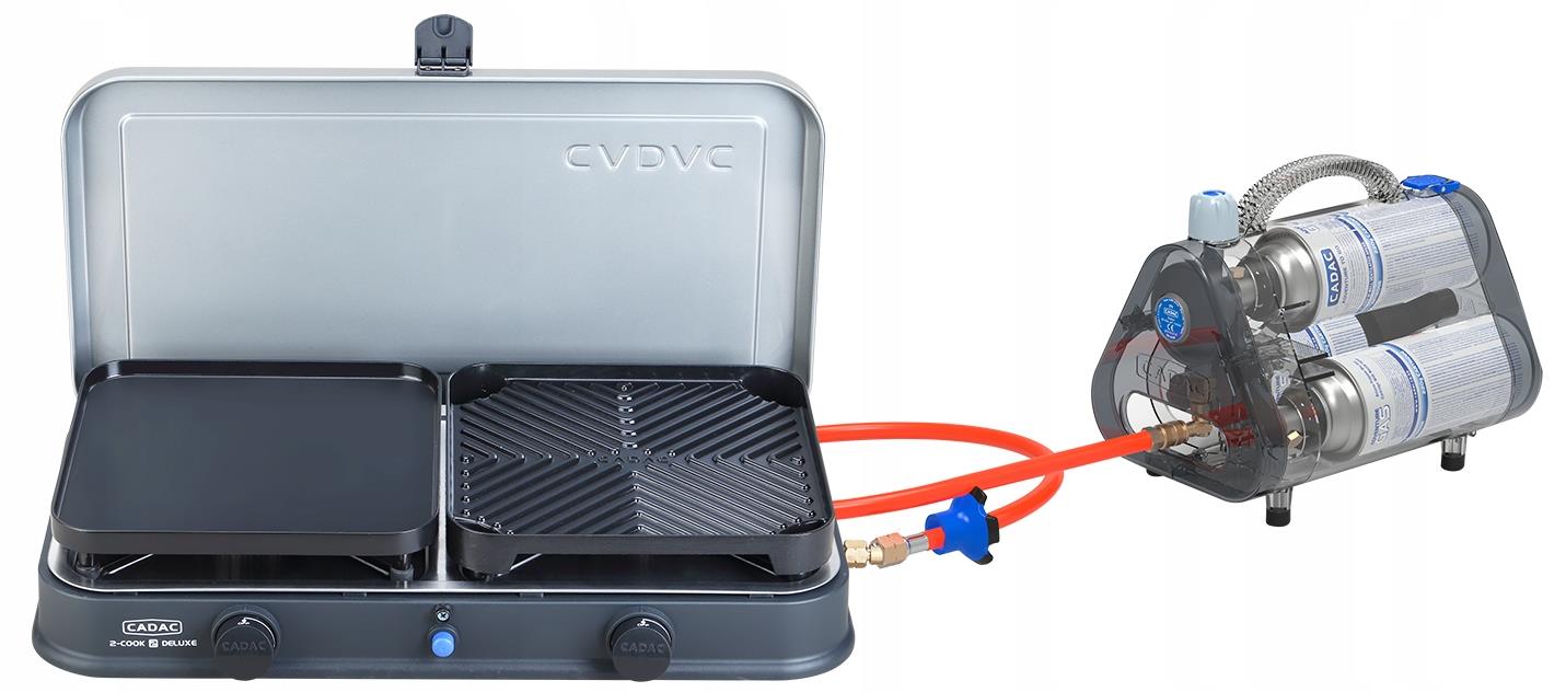 waży tylko 1,2 kg i łączy dopływ gazu z 3 kartuszami o wadze 220 g każdy