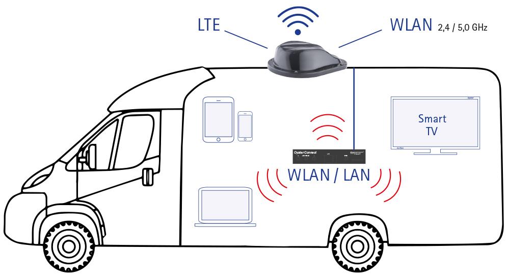 Drugi element systemu Oyster Connect - jednostka wewnętrzna - znajduje się wewnątrz pojazdu i służy jako punkt dostępu Wi-Fi, tak jak w domu. W jednostce wewnętrznej wbudowany jest pełny, prywatny punkt dostępowy ze zintegrowanymi antenami WiFi 2,4 i 5 GHz (technologia 2x2 MIMO). Oba pasma działają równolegle - dzięki czemu można połączyć kilka urządzeń mobilnych jednocześnie, nawet na różnych pasmach, z możliwie najwyższym transferem danych.