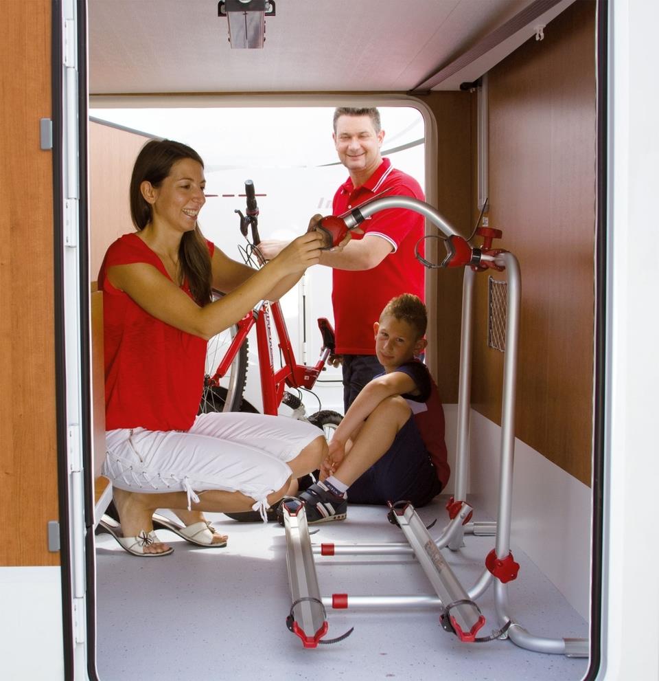 Montaż wewnątrz tylnego schowka samochodu kempingowego, aby bezpiecznie przewozić od 2 do 4 rowerów