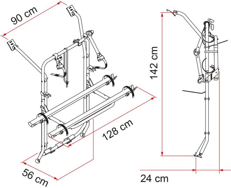 Może pomieścić do 4 rowerów z dodatkowymi opcjonalnymi szynami