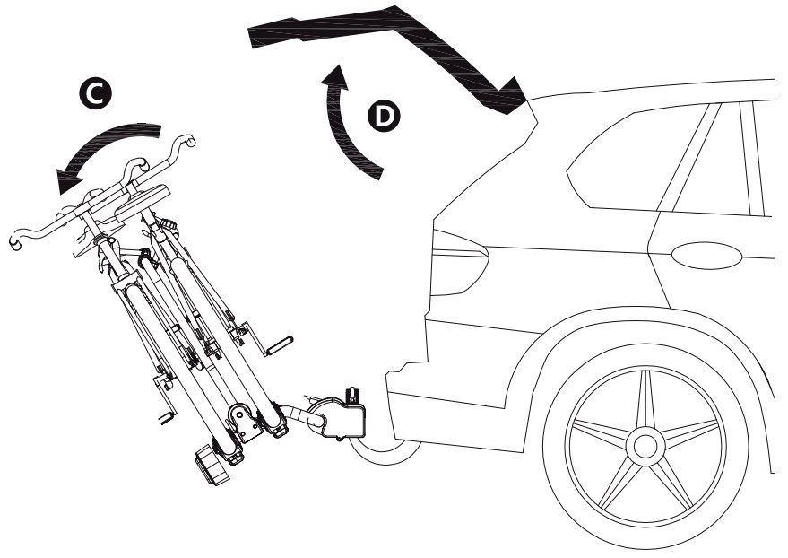 System uchylania platformy umożliwia dostęp do bagażnika bez zdejmowania rowerów
