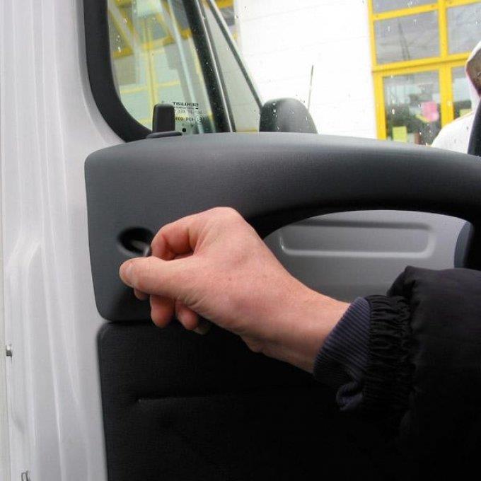 Zamki antywłamaniowe do drzwi kabiny. Montaż za pomocą istniejących śrub na klamce drzwi. Dostawa w parach (lewy i prawy).