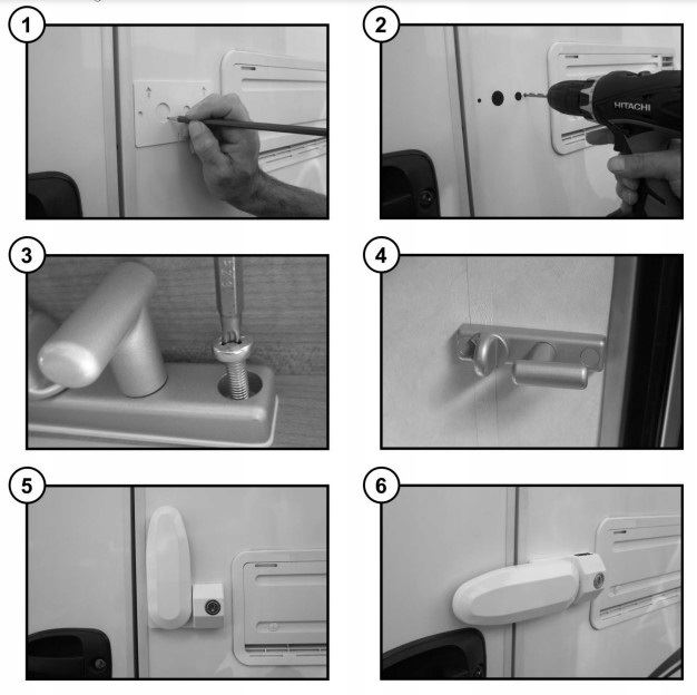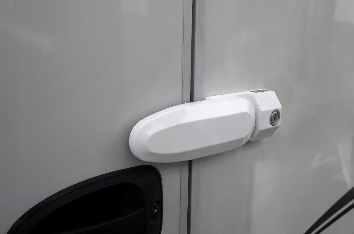 Zabezpiecza drzwi kampera i przyczepy kempingowej od środka i od zewnątrz
