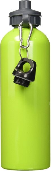 Butelka wyposażona jest w zakrętkę, sportową nakrętkę oraz wygodny karabińczyk mocujący