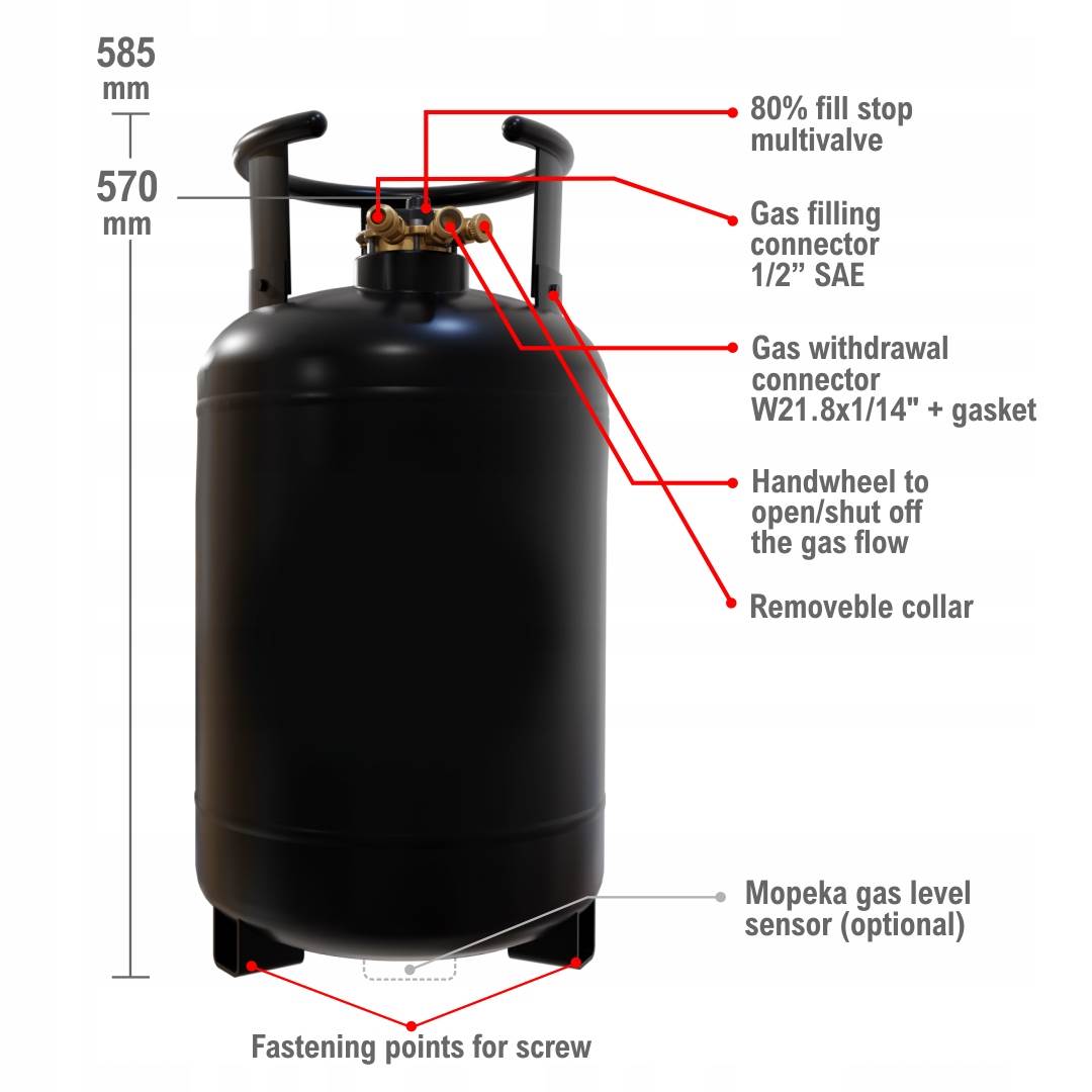 Kołnierz butli można zdjąć w celu zaoszczędzenia miejsca podczas instalacji