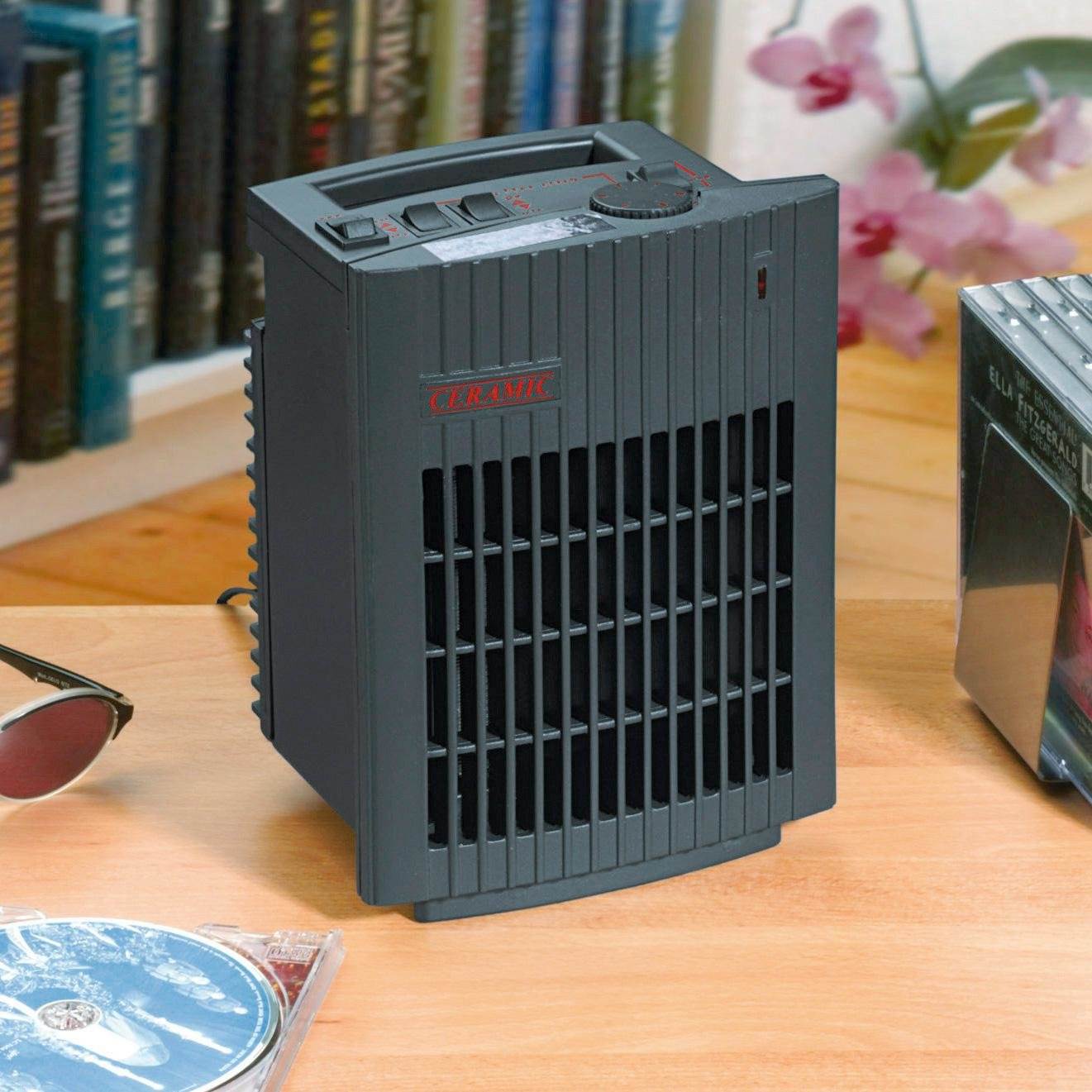 Art Heizger├Ąte: Heizl├╝fter, Art Heizger├Ąte: Keramikheizer, Betriebsart Heizger├Ąte: Elektrisch 230 Volt, Stromaufnahme: 6,9 A bei 1.500 W, 2 A bei 440 W, Betriebsspannung: 230 V, Farbe: grau, Gewicht: 1,5 kg, Ma├źe (LxBxH): 13 x 16 x 21 cm, Leistung: max.1.500 W
