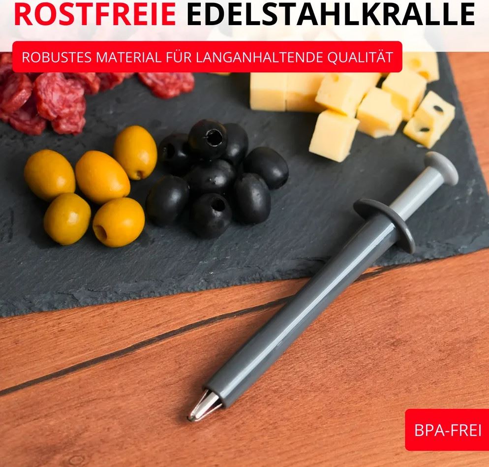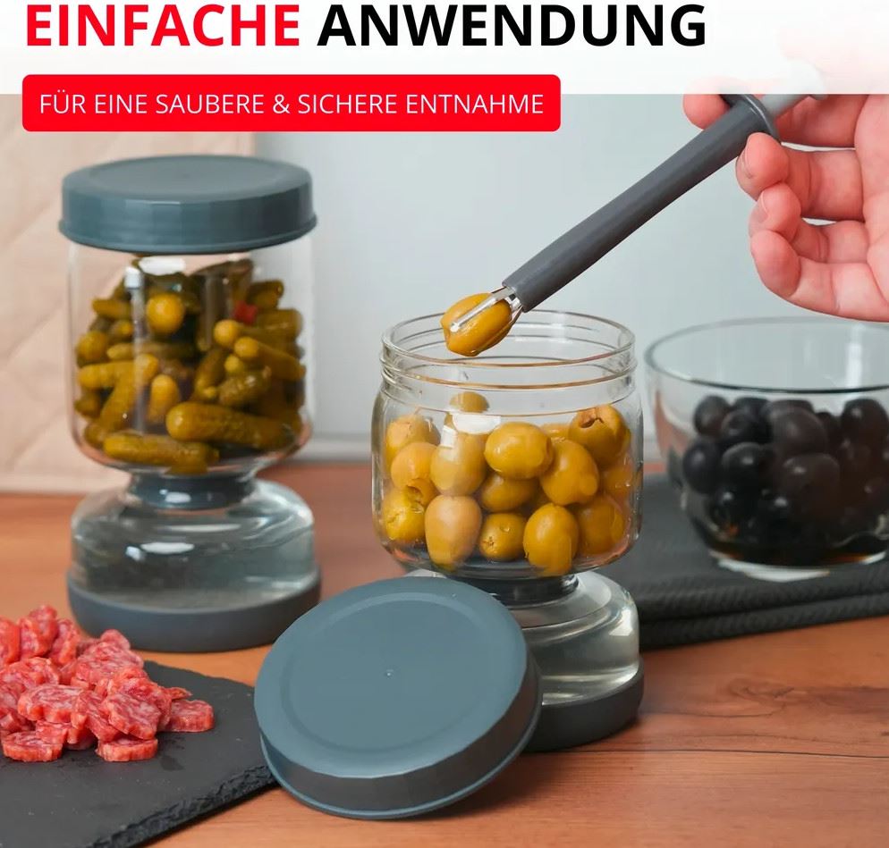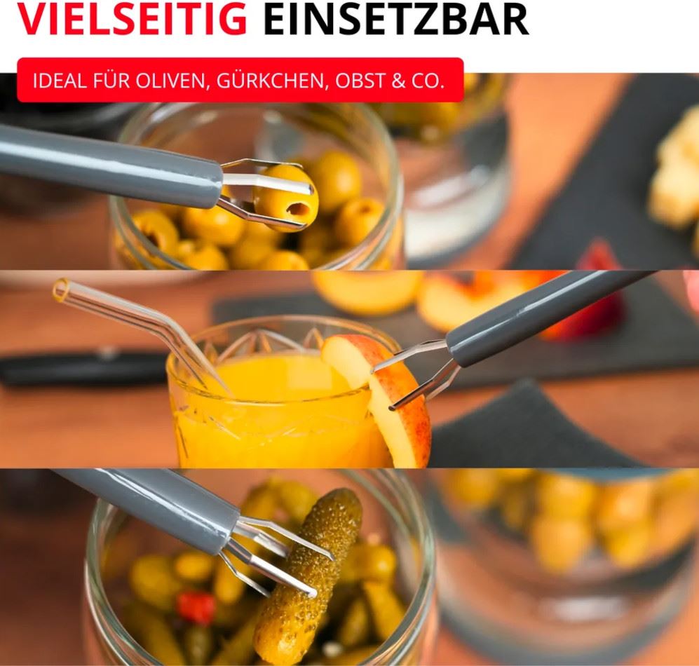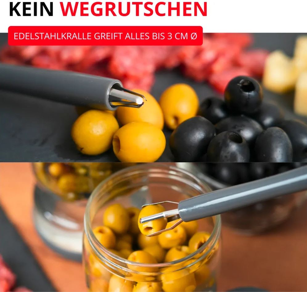 Dzięki szczypcom do oliwek bez trudu wyjmiesz oliwki, pikle, korniszony itp. o średnicy do 3 cm ze słoików