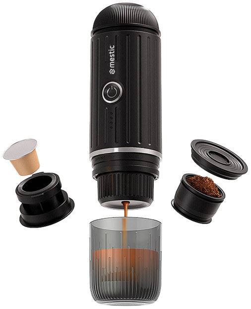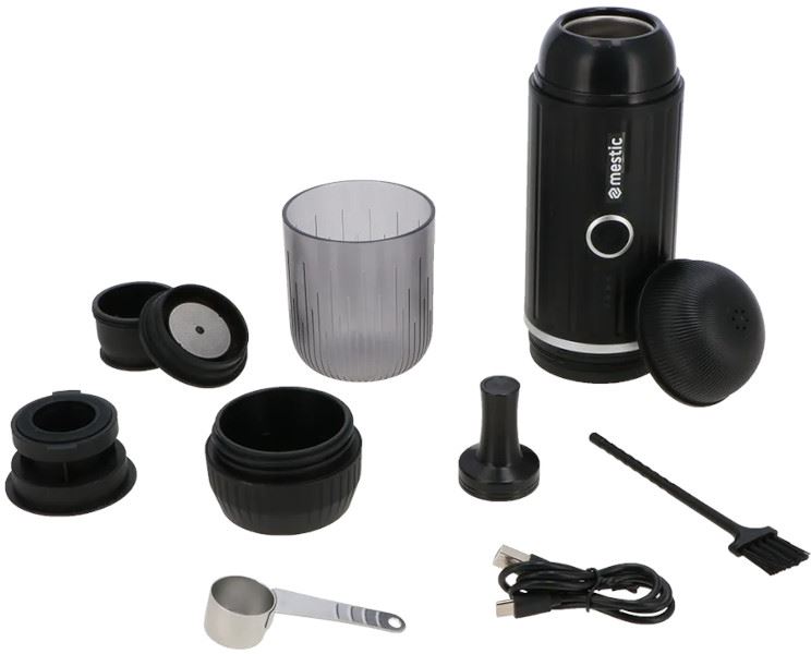 Przenośny ekspres do kawy Mestic MK-90 charakteryzuje się kompaktową, przenośną, czarną obudową