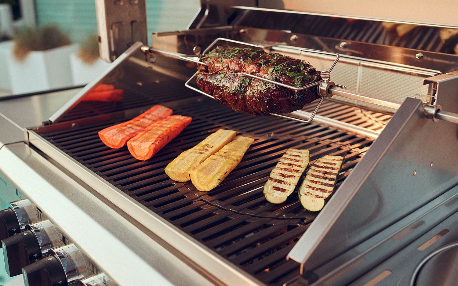 Idealny do równomiernego grillowania pieczeni, drobiu czy polędwicy