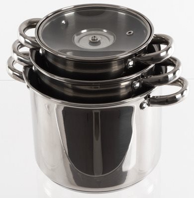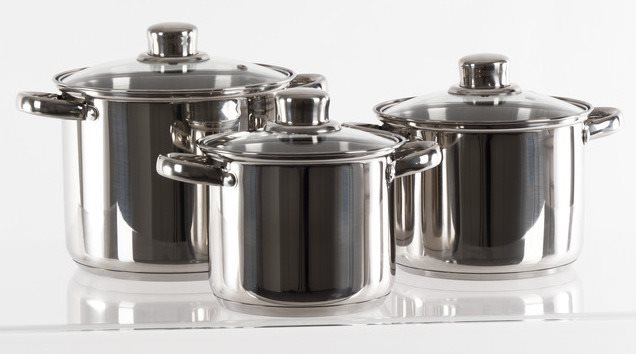 Garnki ze szklanymi pokrywkami z uchwytami ze stali nierdzewnej po bokach