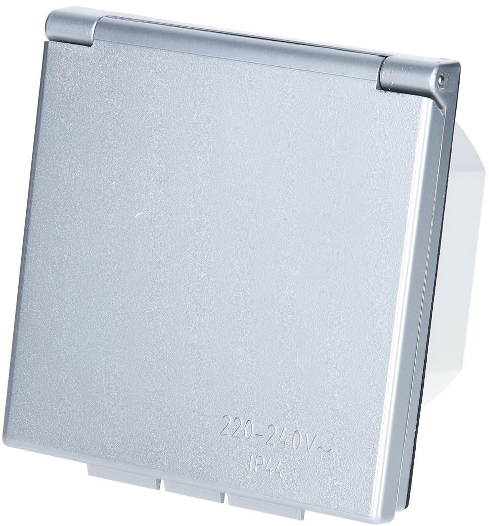 GNIAZDO ELEKTRYCZNE 230V/12V/TV/SAT SREBRNE ZEWNĘTRZNE