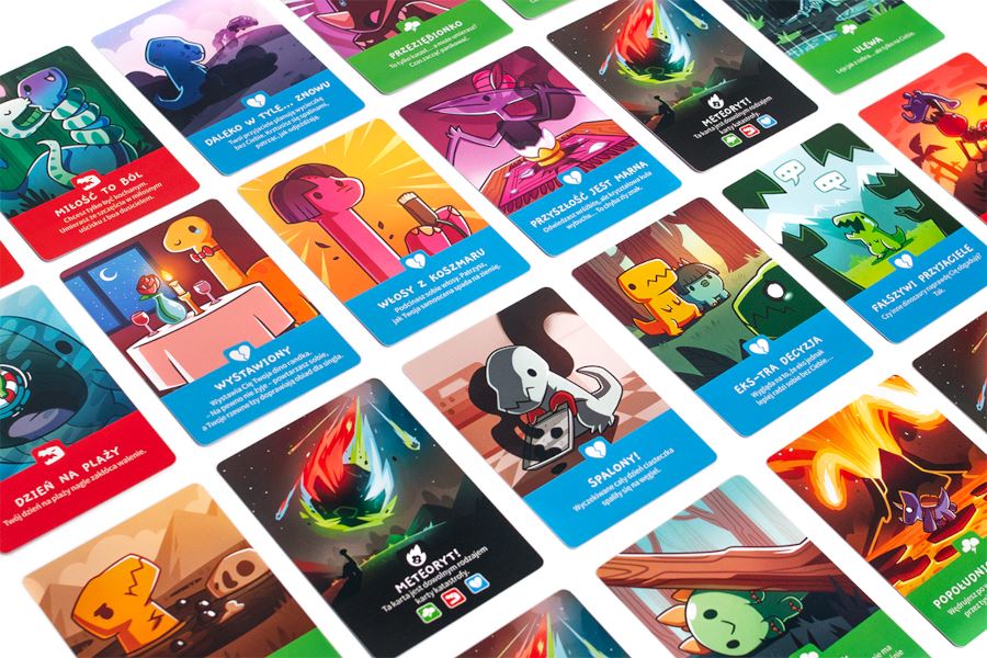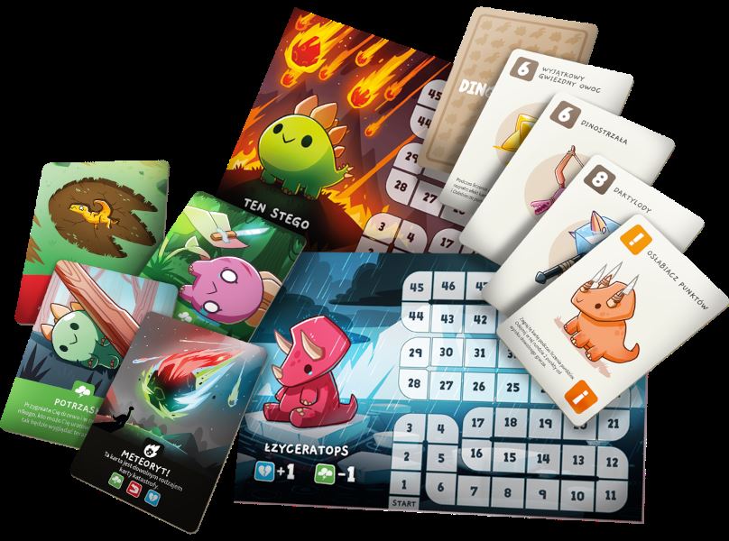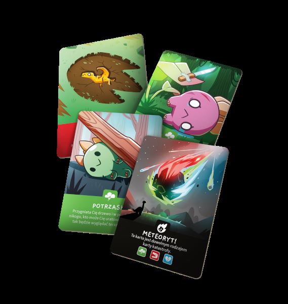 Dinokalipsa to strategiczna gra karciana twórcy Odjechanych Jednorożców! Podczas zabawy jesteś dinozaurem, a życie co chwilę daje Ci w kość. Zrobisz wszystko, co w Twojej mocy, aby uniknąć katastrof naturalnych, drapieżnych i emocjonalnych, wymijając przy tym meteoryty i, tak jak w prawdziwym życiu, zapewne poniesiesz porażkę. Ale nie poddawaj się, bo pierwszy dinozaur, który zdobędzie 50 punktów (albo ostatni dinozaur w grze), zwycięży! Hura!