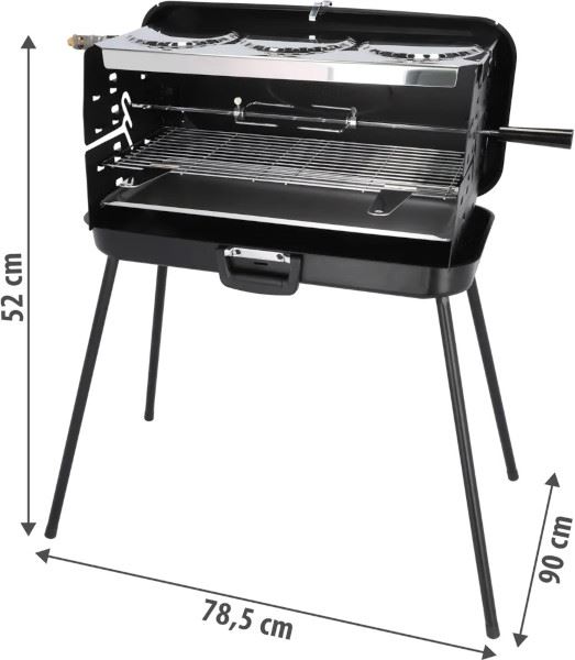 Chromowany ruszt z regulacją wysokości i rożen obrotowy z zaciskami do mięsa sprawiają, że grillowanie wielu potraw jednocześnie jest wyjątkowo wygodne