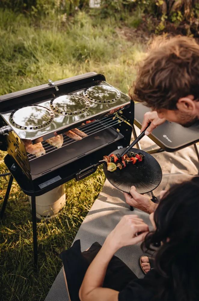 Grill walizkowy to praktyczny grill gazowy na propan o mocy 30 mbar z trzema palnikami – idealny, jeśli nie chcesz rezygnować z prawdziwego grillowania w podróży
