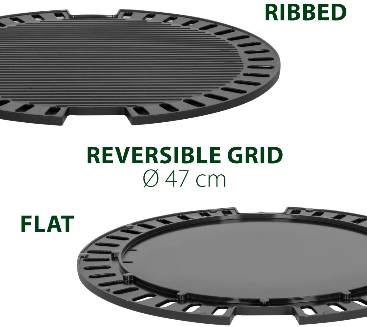 Odwracalna, obustronna żebrowana i gładka płyta grilla gazowego BBQRUISER jest idealna do przygotowania każdego jedzenia