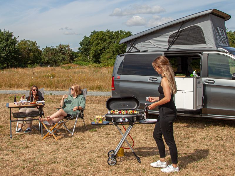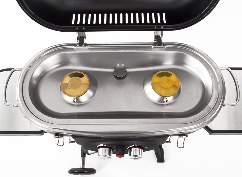Przenośny grill z 2 dużymi powierzchniami roboczymi (wysuwane półki boczne)