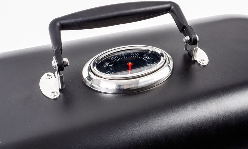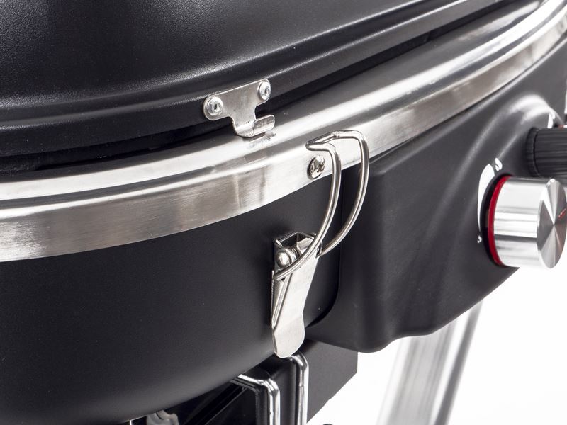 Wyjątkowo wysoka, zdejmowana pokrywa ze składanym uchwytem oraz termometrem umożliwia optymalne grillowanie szerokiej gamy potraw