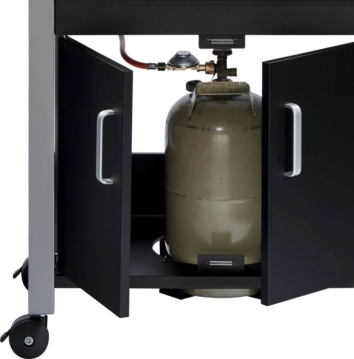 Butla z gazem do 5 kg może pozostać w szafce pod grillem podczas pracy