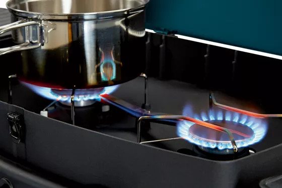 2 palniki ze stali nierdzewnej do wydajnego bezpośredniego i pośredniego grillowania, gotowania i pieczenia