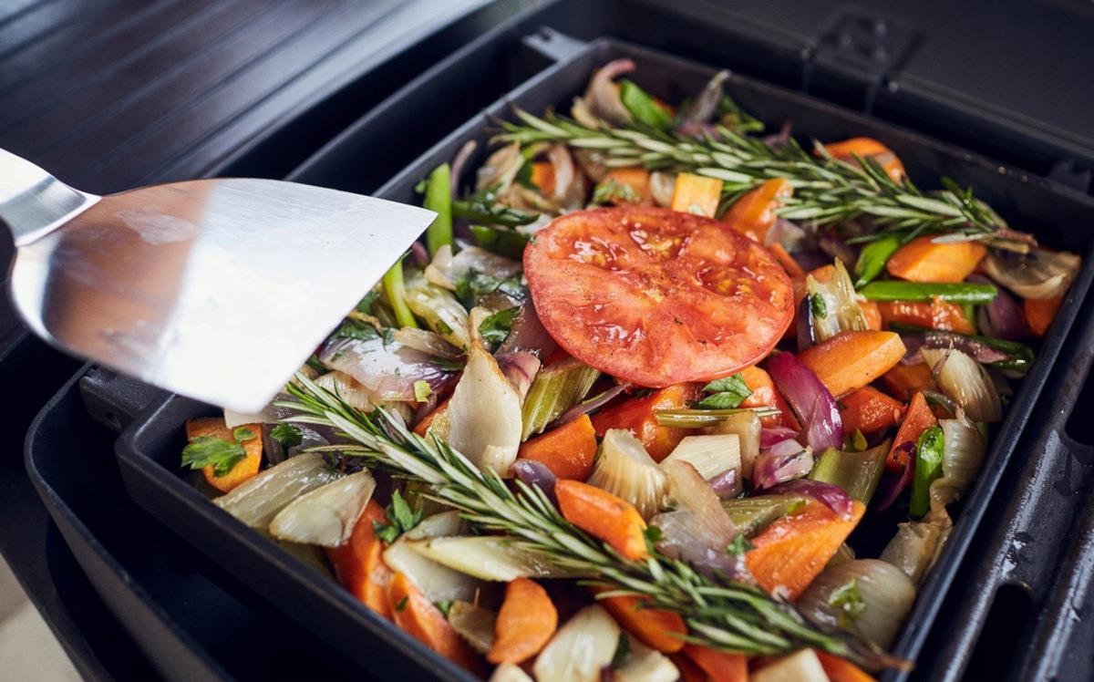 Dzięki zamykanej pokrywie z wbudowanym termometrem grill służy również jako piekarnik