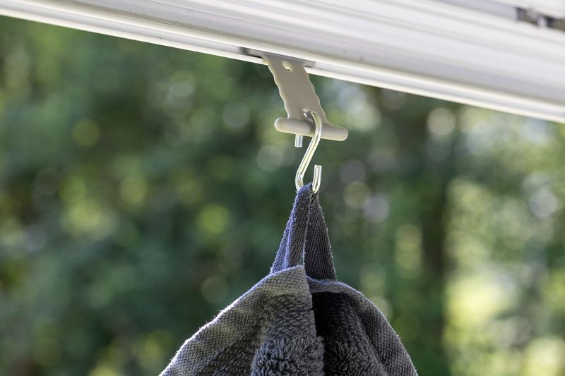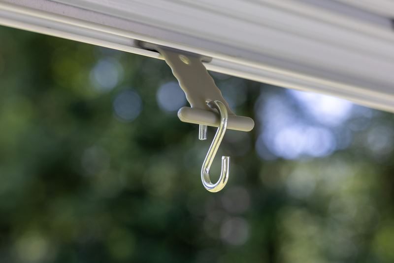 Zestaw haczyków, które wsuwa się w markizę