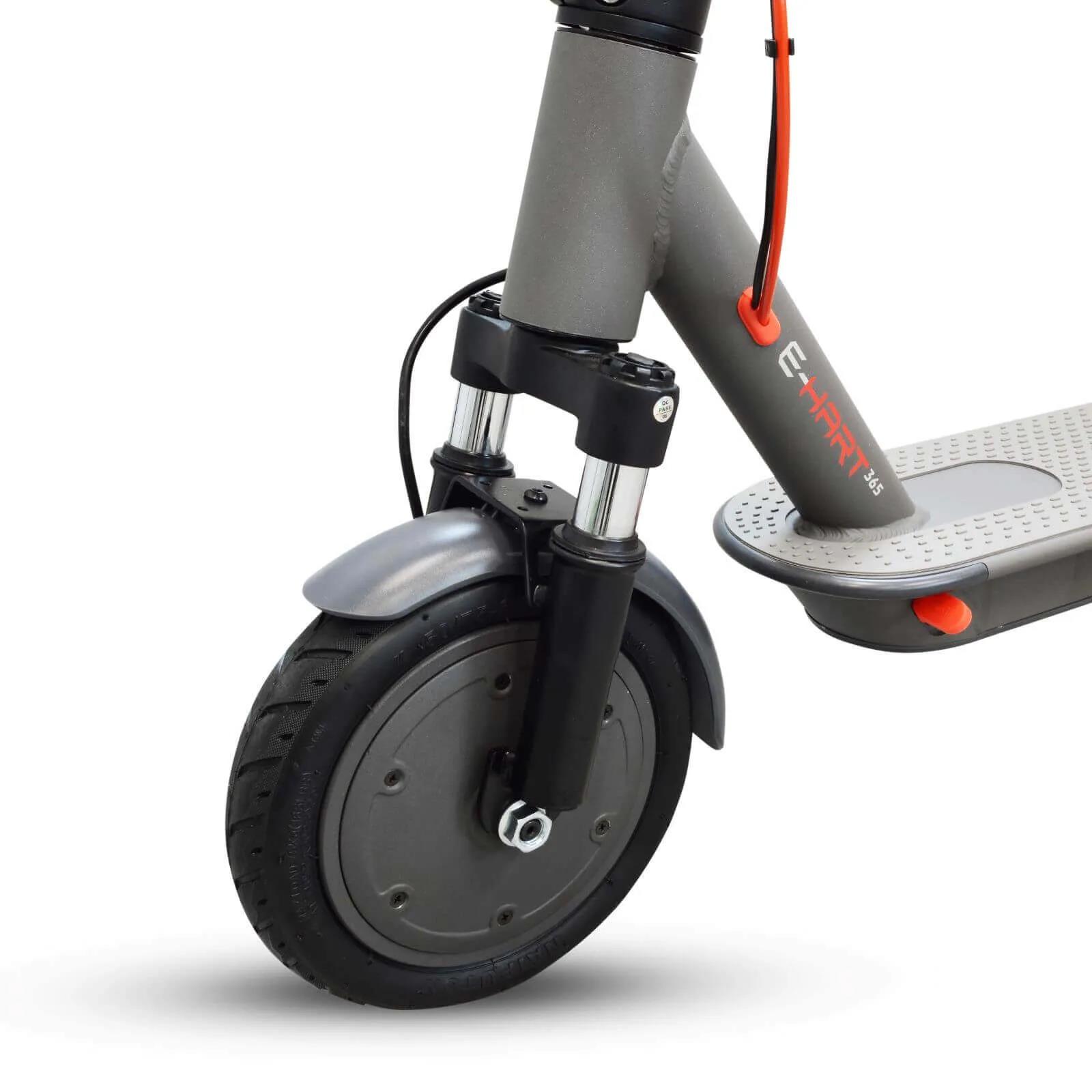 Hulajnoga elektryczna E-HART 2.0Łatwość obsługiAby rozpocząć jazdę wystarczy wprawić hulajnogę w ruch, a następnie nacisnąć prawą manetkę akceleratora uruchamiającą silnik elektryczny. Równie prosta jest obsługa pojazdu przy użyciu wyświetlacza. Włączanie systemu to tylko przytrzymanie przycisku przez 3 sekundy, włączanie świateł – jedno naciśnięcie, natomiast płynne zmiany trybów prędkości wymagają jedynie dwóch szybkich kontaktów z przyciskiem. Pewne i bezpieczne hamowanieZastosowanie powiększonej tarczy hamulcowej oraz topowej jakości klocków i zacisków gwarantuje pewności bezpieczeństwo hamowania. Wystarczy zwolnić manetkę przyspieszenia i nacisnąć ręczną dźwignię by skutecznie uruchomić tylny hamulec tarczowy. Aby utrzymać hamulec w nienagannej sprawności zalecamy przeprowadzanie jego okresowych regulacji. Szybkie i tanie ładowanieHulajnoga wyposażona jest w akumulator litowo - jonowy. Do jego pełnego naładowania potrzeba zaledwie 4 godzin. Poziom naładowania akumulatora pokazuje pasek stanu na wyświetlaczu. Aby sprawnie przeprowadzić tę czynność wystarczy do portu znajdującego się po lewej stronie podestu podłączyć dedykowaną ładowarkę, połączoną ze źródłem zasilania. Akumulator zastosowany w naszym urządzeniu daje możliwość pokonania dystansu nawet 25 km na jednym ładowaniu. Zaleca się przechowywać hulajnogę w stanie naładowanym.