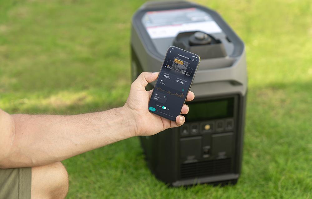 Połącz Smart Generator Dual Fuel z aplikacją EcoFlow i zyskaj dostęp do dodatkowych możliwości! Kontroluj parametry wyjściowe DC, włączaj i wyłączaj urządzenie zdalnie, wygodnie przełączaj się na tryb Eco i otrzymuj przydatne powiadomienia. Możesz też zautomatyzować pracę agregatu. Spraw, że będzie samoistnie się uruchamiał, gdy stacja rozładuje się do określonego poziomu, a następnie kończył pracę, kiedy ją naładuje. Ty już nie musisz się niczym martwić!