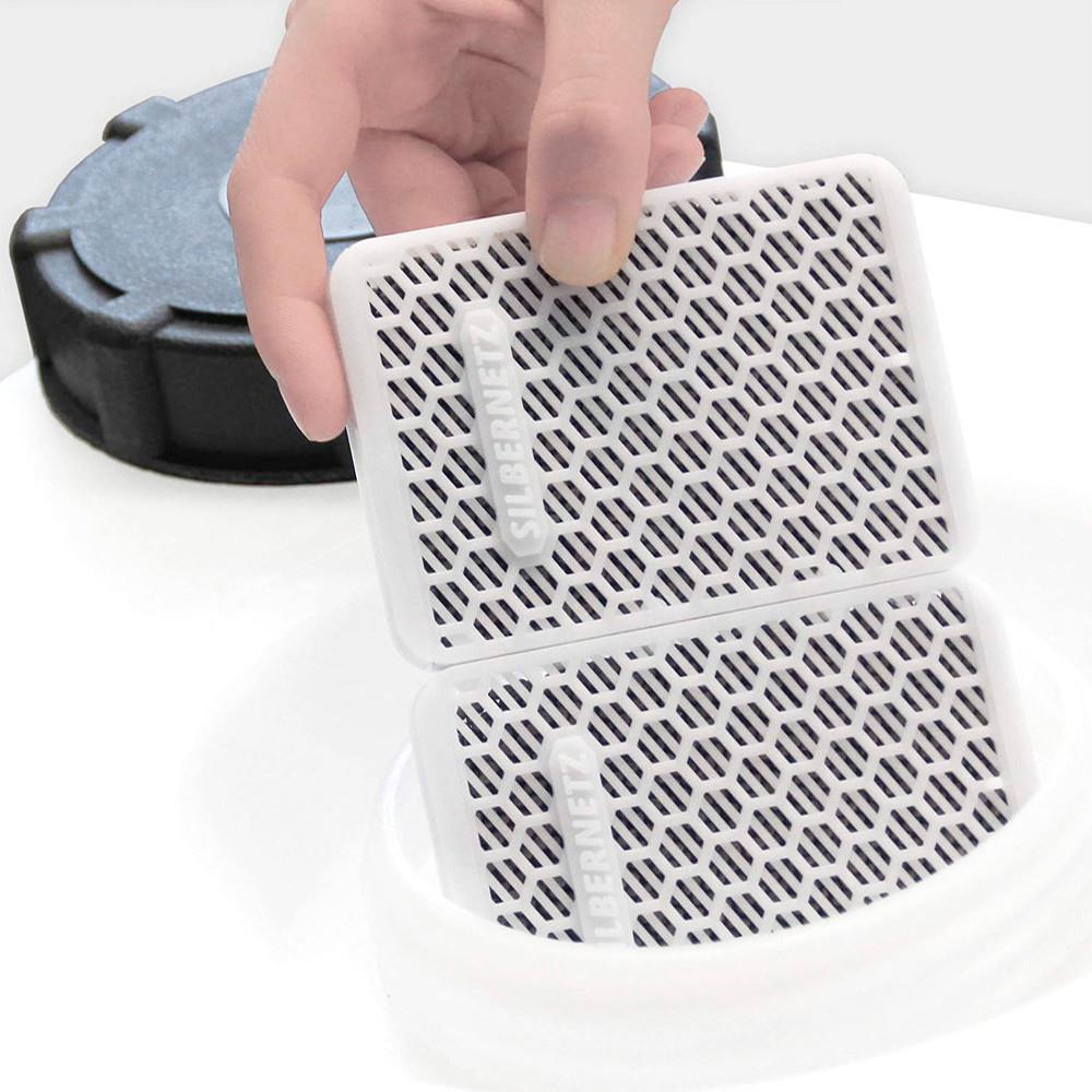 Srebrna siatka zapewnia ochronę wody w zbiorniku przed ponownym zanieczyszczeniem do 6 miesięcy bez dozowania - automatycznie przy każdym nowym napełnieniu zbiornika