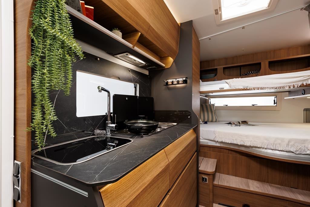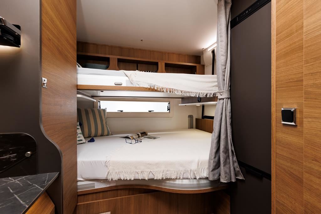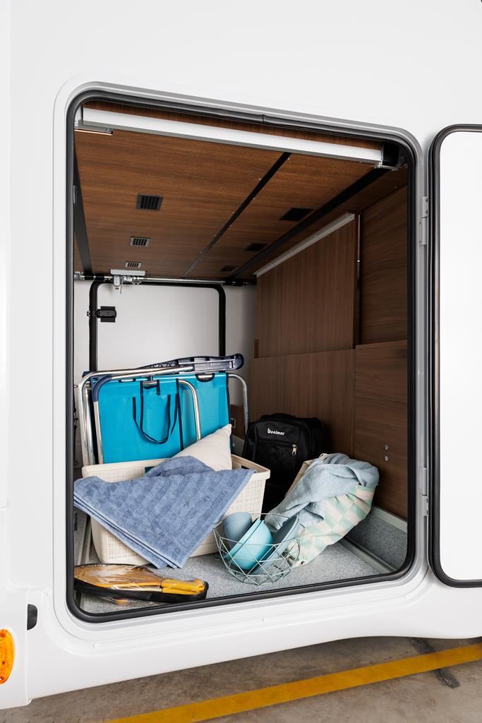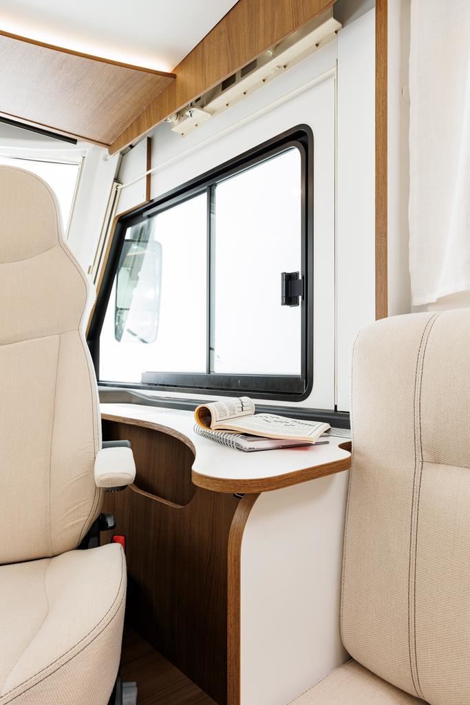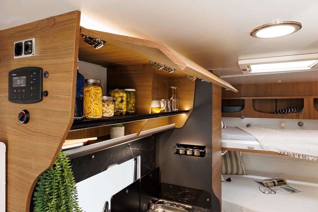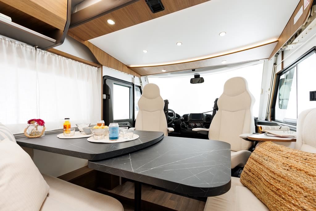 Kamper Benimar Amphitryon 940 o masie dopuszczalnej 3,5t z silnikiem EURO 6 (2,2 140 KM) oferuje komfortowe wnętrze z nowymi meblami MALAGA, elektrycznie opuszczanym łóżkiem i systemem Webasto. Wyposażony w kuchnię z 3-palnikową kuchenką gazową, lodówką 140 l oraz łazienkę z oddzielnym prysznicem. W standardzie znajdują się: tempomat, ABS, ESP, klimatyzacja, oraz systemy bezpieczeństwa. Dodatkowe opcje zamontowane: automatyczna skrzynia biegów, instalacja fotowoltaiczna, izolacja zimowa.