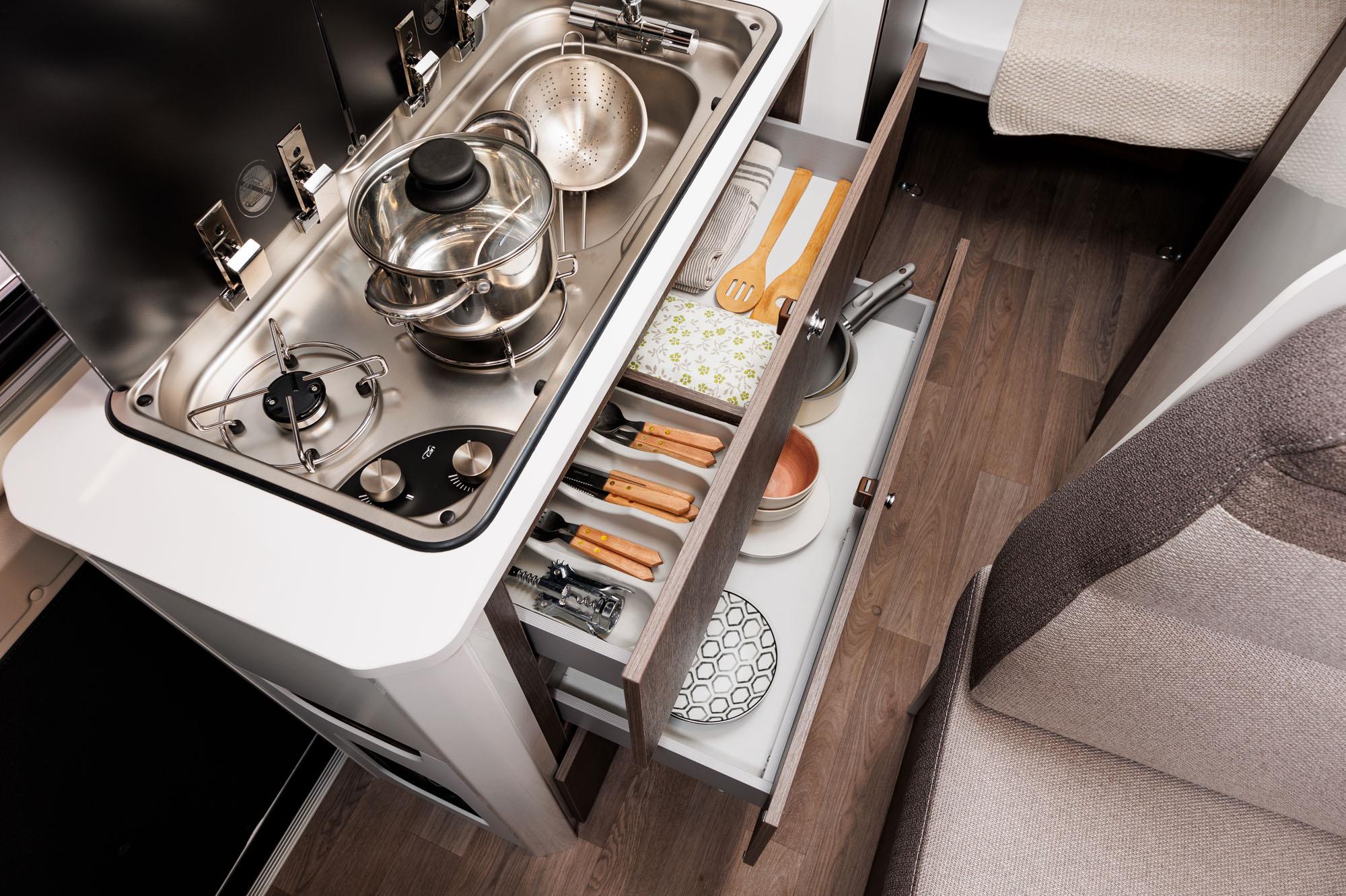Benivan 120 to idealne połączenie funkcjonalności i komfortu. Podwozie FIAT z silnikiem 2.2L 140 KM i 6-biegową skrzynią zapewnia płynną jazdę, a systemy ABS, ESP, Traction Plus oraz tempomat podnoszą bezpieczeństwo. Wyposażony w manualną klimatyzację, podgrzewane lusterka i harmonijkowe zasłony. Wnętrze zachwyca nową tapicerką IMPERIA, meblami PAMPLONA, rozkładanym stołem PREMIUM i miejscami do spania dla 4 osób. Kuchnia z lodówką 84 l i 2-palnikową kuchenką. Ogrzewanie Webasto Diesel, izolacja termiczna i dodatkowe pakiety: Proteck i Polar, idealne sprawdzą się w zimowych warunkach.