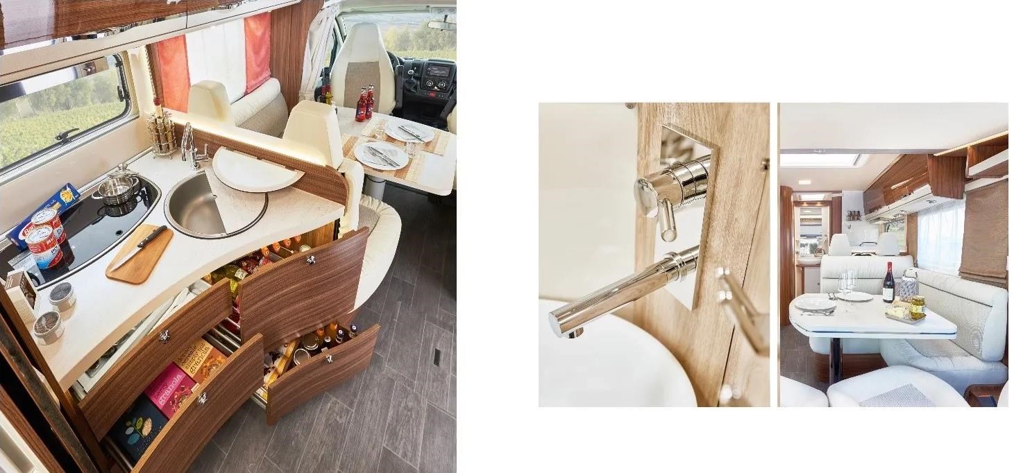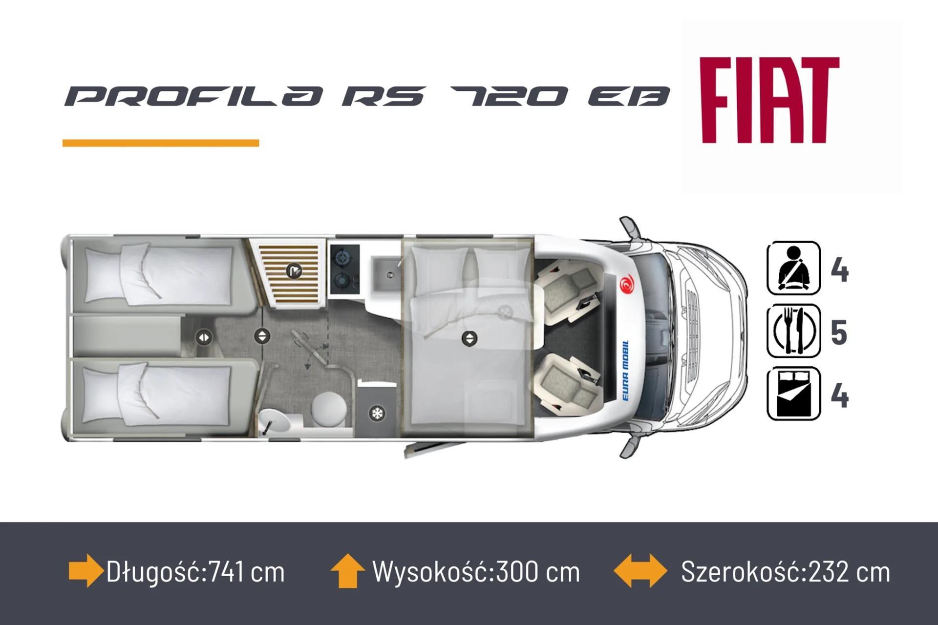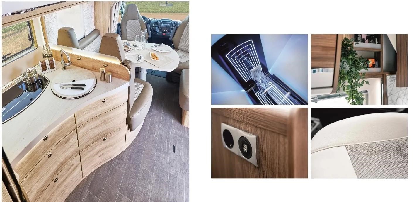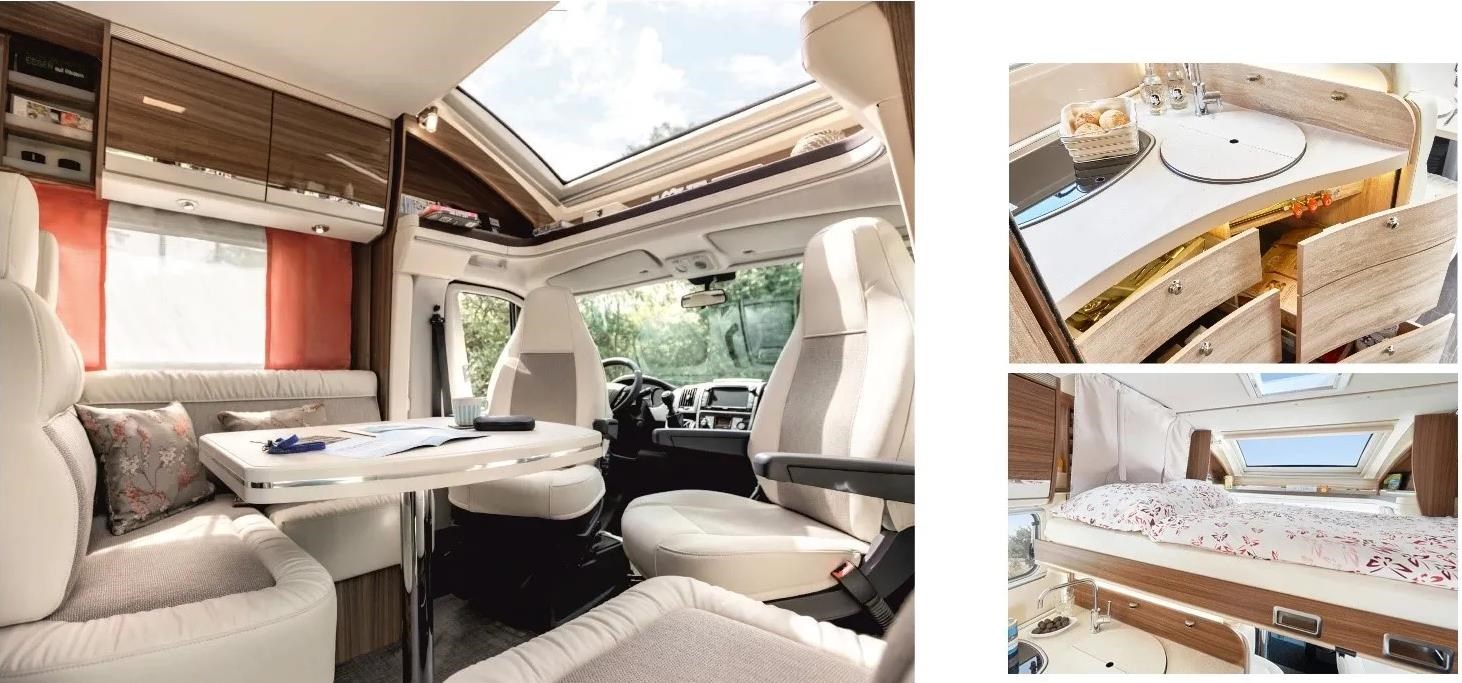 Istnieje wiele niskoprofilowych kamperów z podnoszonymi łóżkami. Koncepcja pojazdu Profila RS uwzględnia jednak potrzebę większej przestrzeni, jak również bardziej kompaktowej zabudowy. Profila RS to jedyny samochód kempingowy oferujący praktyczny luk bagażowy i przestronny salon z kuchnią. Projekt charakteryzuje się eleganckim zakrzywionym dachem z GRP, który harmonijnie łączy się z nadbudową. Wnętrze mobilnego domu imponuje przestronnością, którą tworzy przede wszystkim łóżko zintegrowane z sufitem.