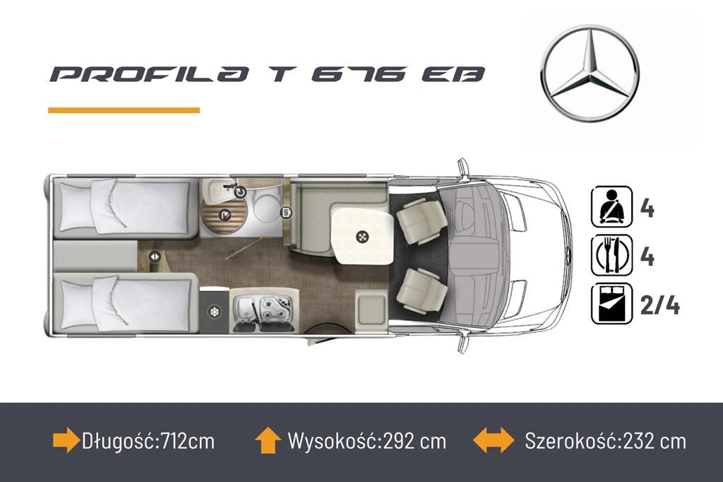 Luksusowy kamper na bazie Mercedes-Benz do 3,5 t. z silnikiem EURO 6 2.0 150 KM z możliwością wykupu pakietów z opcjami takimi jak wzmocnienie silnika do 170KM, zwiększenie DMC do 4,5t czy automatyczną skrzynią 9G-Tronic. Ocieplona podwójna podłoga, zabudowa bez mostków termicznych, izolowane ściany i dach z TWS. Wnętrze „Chalet” z przestronną sofą, kuchnią (lodówka 142 l, płyta 3-palnikowa), łazienką z prysznicem i toaletą kasetową. Mondial Pack Plus oferuje panoramiczne okno, klimatyzację, markizę, indukcyjną ładowarkę i system multimedialny. Praktyczne schowki, ambientowe oświetlenie, ogrzewanie Alde, izolowane zbiorniki na wodę i zewnętrzny prysznic czynią go idealnym na każdą podróż.