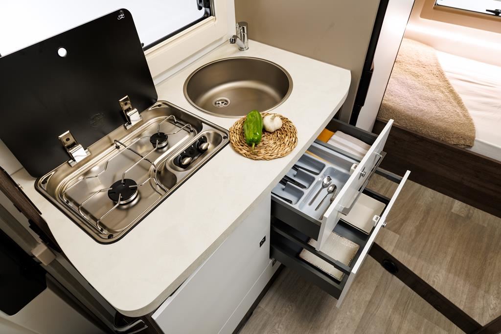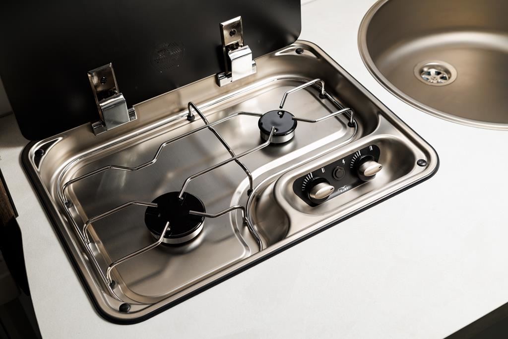 Zlewozmywak i dwu palnikowa kuchenka gazowa z zapłonem elektrycznym
