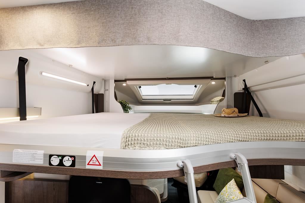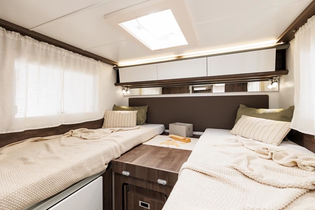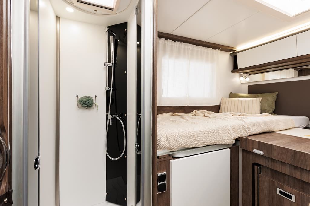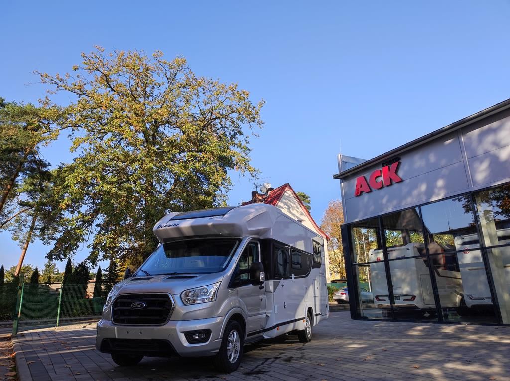 Nowoczesny kamper na podwoziu Forda z silnikiem 170 KM i automatyczną skrzynią biegów to idealne połączenie komfortu i funkcjonalności. Wyposażony w aluminiowe felgi, LED-owe oświetlenie, klimatyzację, obrotowe fotele oraz system multimedialny z ekranem 9". Zabudowa kryje przestronny salon w kształcie litery L, kuchnię z dużą lodówką, sypialnię z możliwością łączenia łóżek i łazienkę z oddzielnym prysznicem. Pakiety zimowy i Delivery oraz instalacja fotowoltaiczna gwarantują wygodę w każdą pogodę.