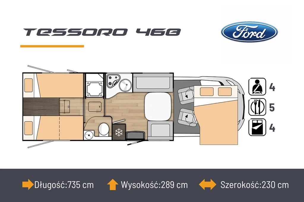 Kamper oparty na Fordzie do 3,5 tony z silnikiem 170 KM i automatyczną skrzynią biegów. Wyposażony w przestronną część dzienną z sofami face-to-face, elektrycznie opuszczane łóżko, dużą lodówkę, kuchnię z 3-palnikową kuchenką gazową i oddzielny prysznic. Dodatkowe pakiety Winter i Delivery zapewniają komfort w trudnych warunkach. Panoramiczne okno dachowe, system ISOFIX w fotelach, a także nowoczesne systemy ogrzewania wraz z fotowoltaiką.