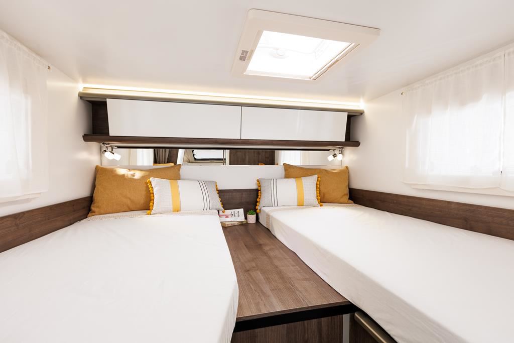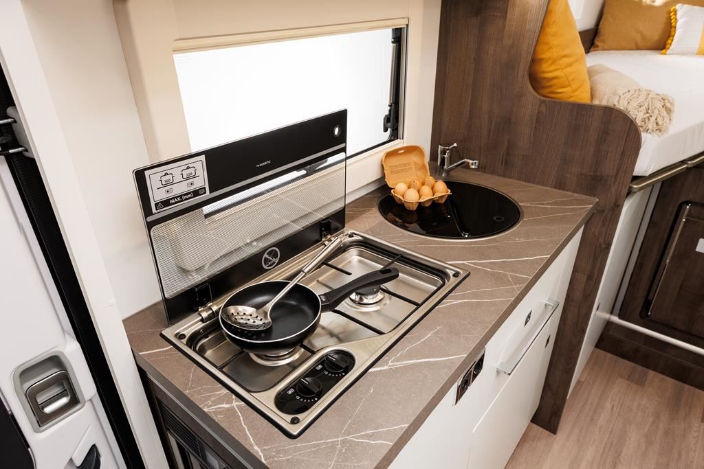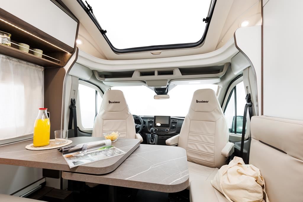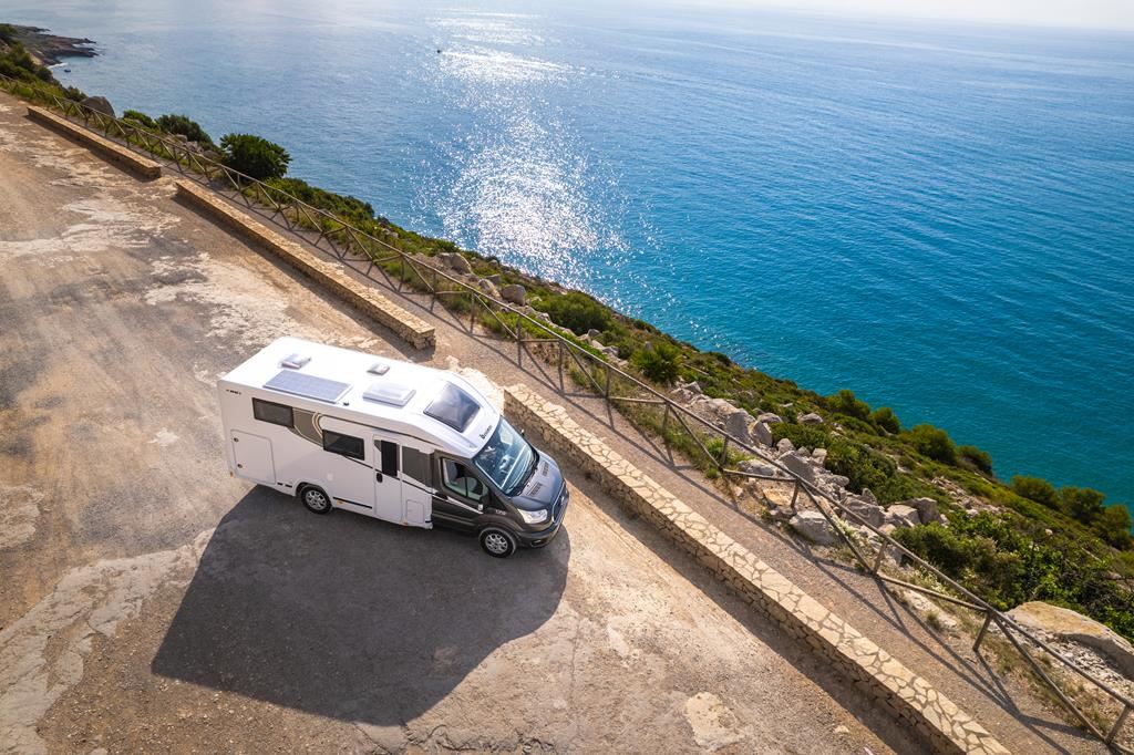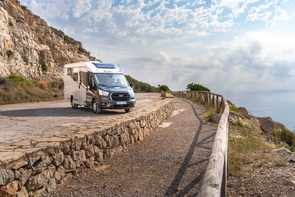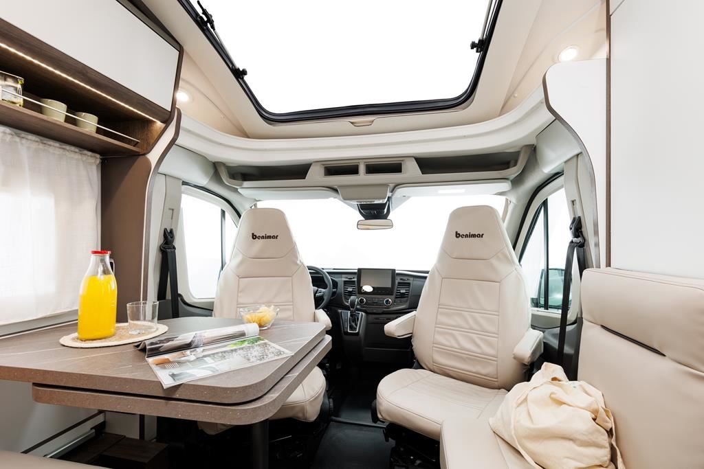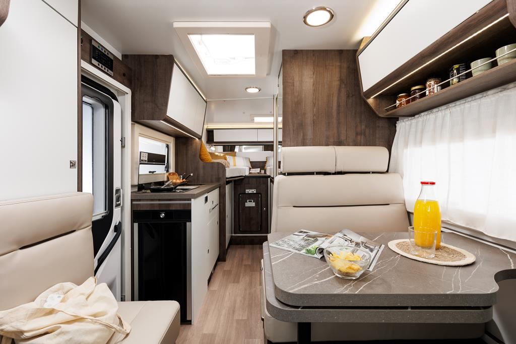 Nowoczesny kamper na podwoziu Ford Euro 6d 170 KM, automatyczną skrzynią biegów i licznymi systemami bezpieczeństwa (ABS, ESP, Hill Start Assist). Wyposażony w klimatyzację, skórzaną kierownicę, radio z ekranem 9", podgrzewane lusterka i szyby. Wnętrze oświetlane ledowo, okna D-Lux z nowoczesnymi meblami, ogrzewaniem Diesel 4000 W, lodówką 70 l, kuchenką gazową, 2 łóżkami i z siedziskami do jazdy z systemem ISOFIX. Dodatki: Pack Proteck, Premium i Winter. Kompaktowe wymiary: 669x214x276 cm, masa 2702 kg.