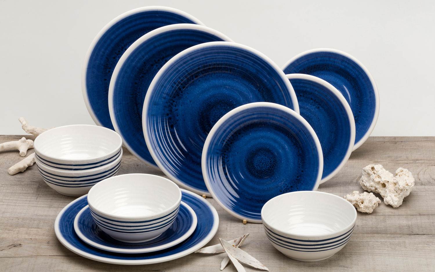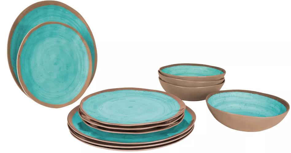ZESTAW OBIADOWY BO-CAMP NIEBIESKO-BRĄZOWY 12 szt.