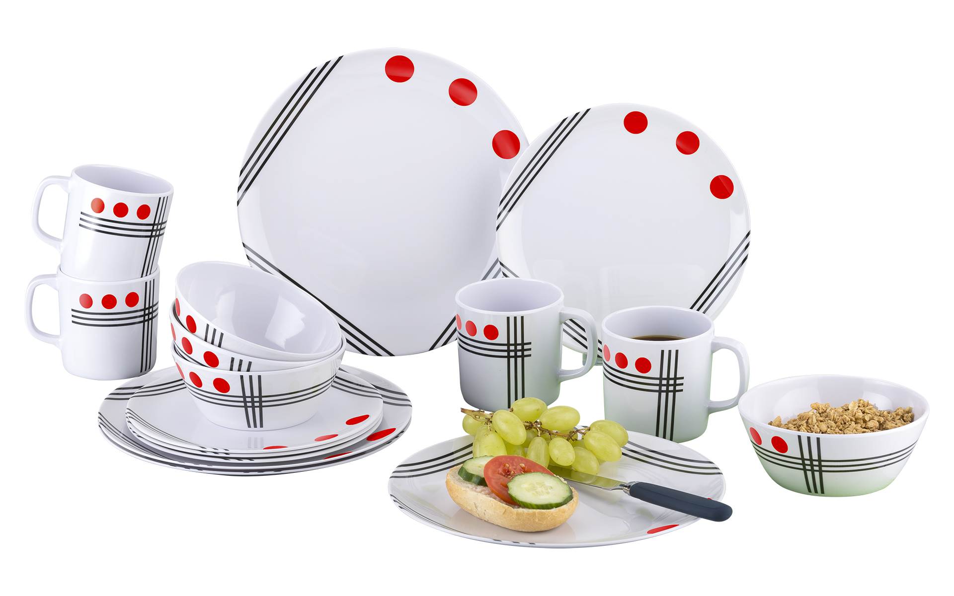 ZESTAW OBIADOWY BERGER DOTS CZERWONY 16 szt.