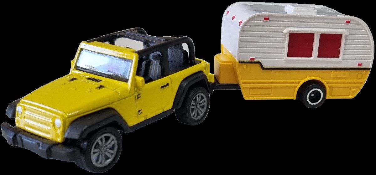 ZABAWKA "AUTO TERENOWE Z PRZYCZEPĄ 16 cm ŻÓŁTE