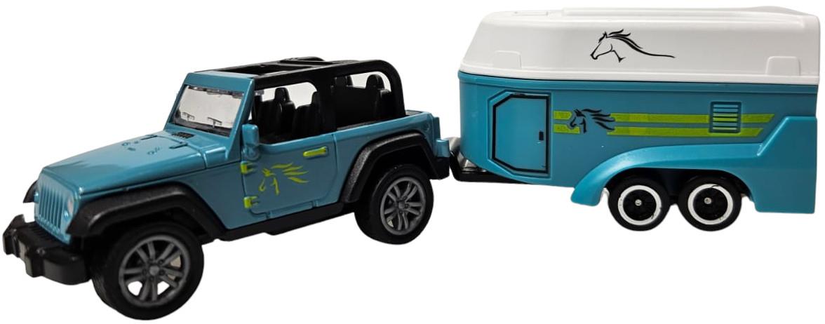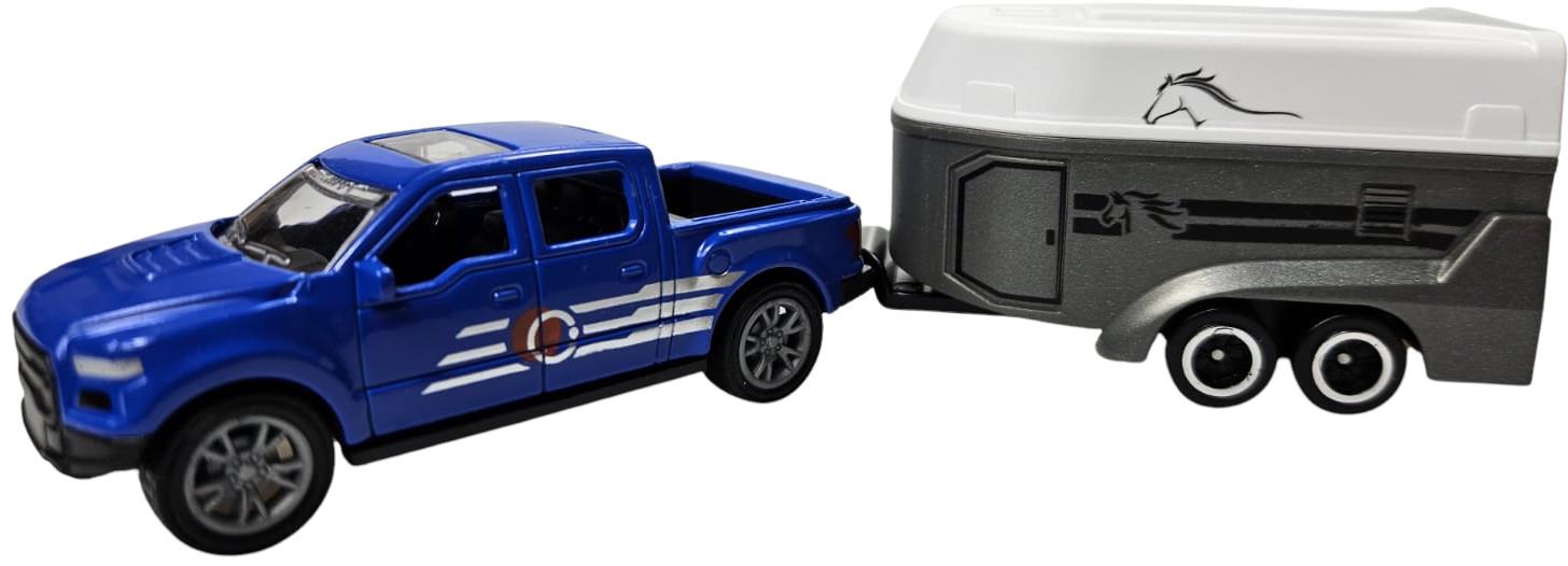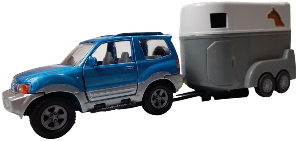 ZABAWKA "AUTO Z PRZYCZEPĄ Z KOŃMI 28 cm NIEBIESKIE