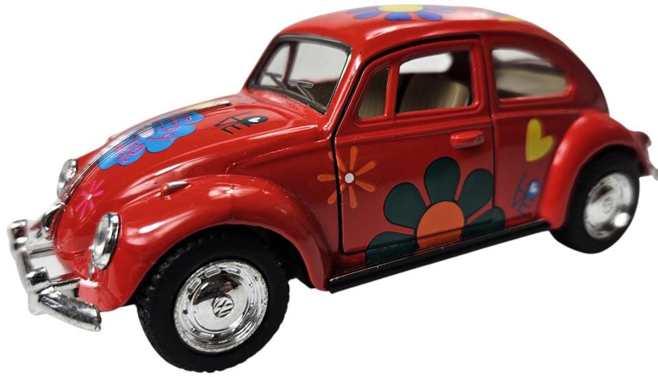 ZABAWKA "AUTO VW GARBUS CLASSIC 1967 1:32 W KWIATKI CZERWONY