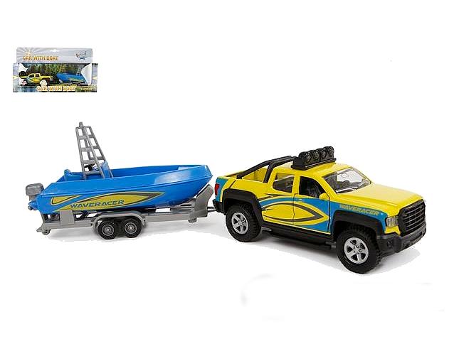 ZABAWKA "AUTO Z ŁODZIĄ ŚWIATŁO DŹWIĘK 29 cm