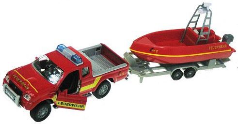 ZABAWKA "AUTO STRAŻ POŻARNA Z ŁODZIĄ Z DZWIĘKIEM 12 cm
