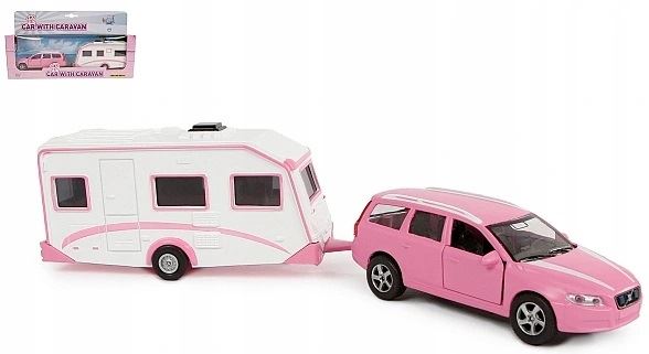 ZABAWKA "AUTO VOLVO V70 Z PRZYCZEPĄ 30 cm RÓŻOWE