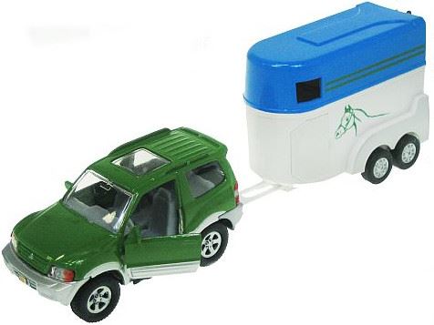 ZABAWKA "AUTO LAND ROVER Z PRZYCZEPĄ DO PRZEWOZU KONI