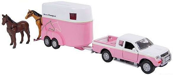 ZABAWKA "AUTO Z PRZYCZEPĄ Z KOŃMI 25 cm RÓŻOWE